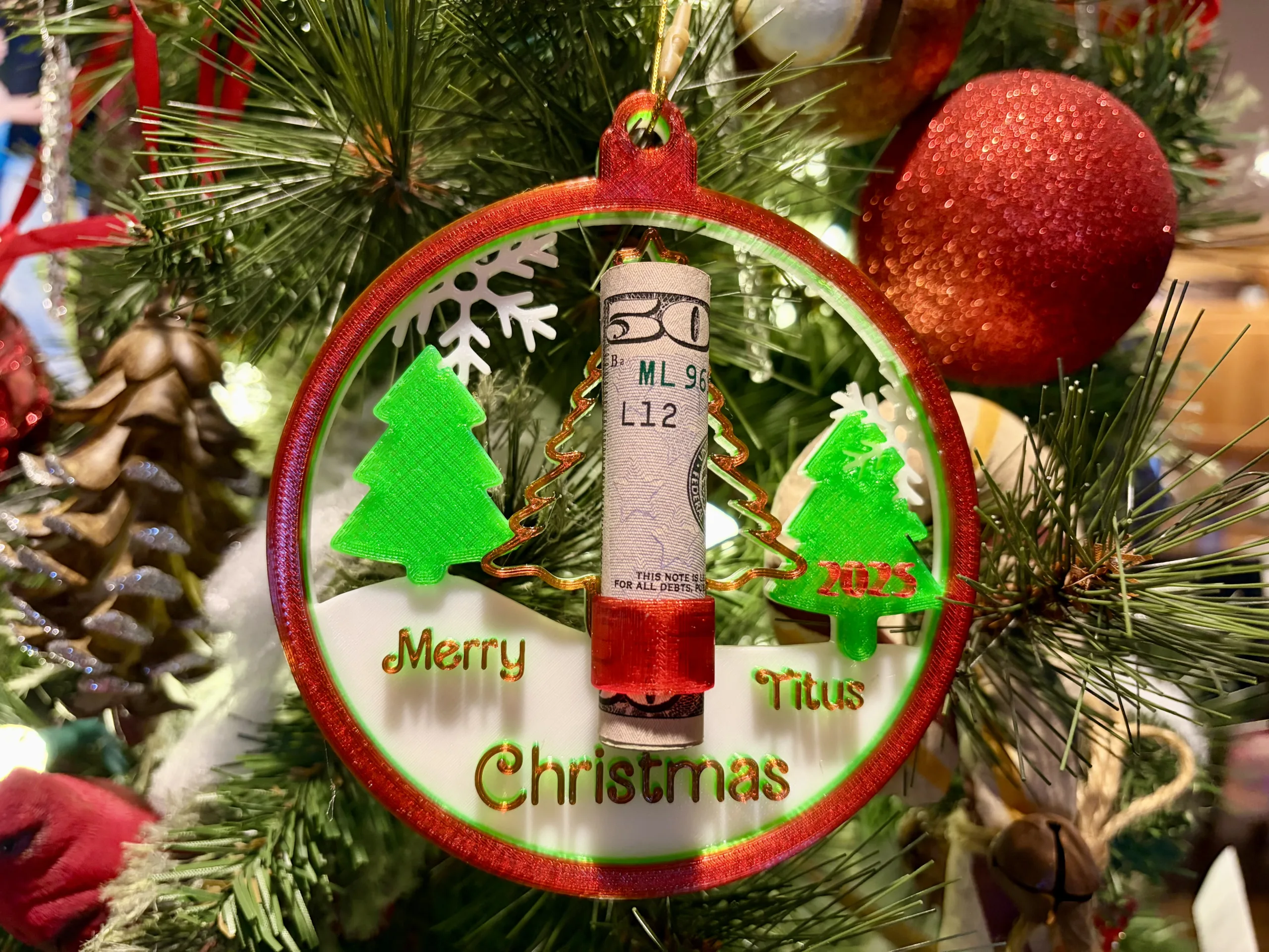 Create a one of a kind Christmas Ornament that gives a new meaning to giving Cash in Style! Add your own custom text that’s unique and is sure to please that person who is hard to buy for. Once they spend the Cash, they will still have a memory to hang on the tree every year.