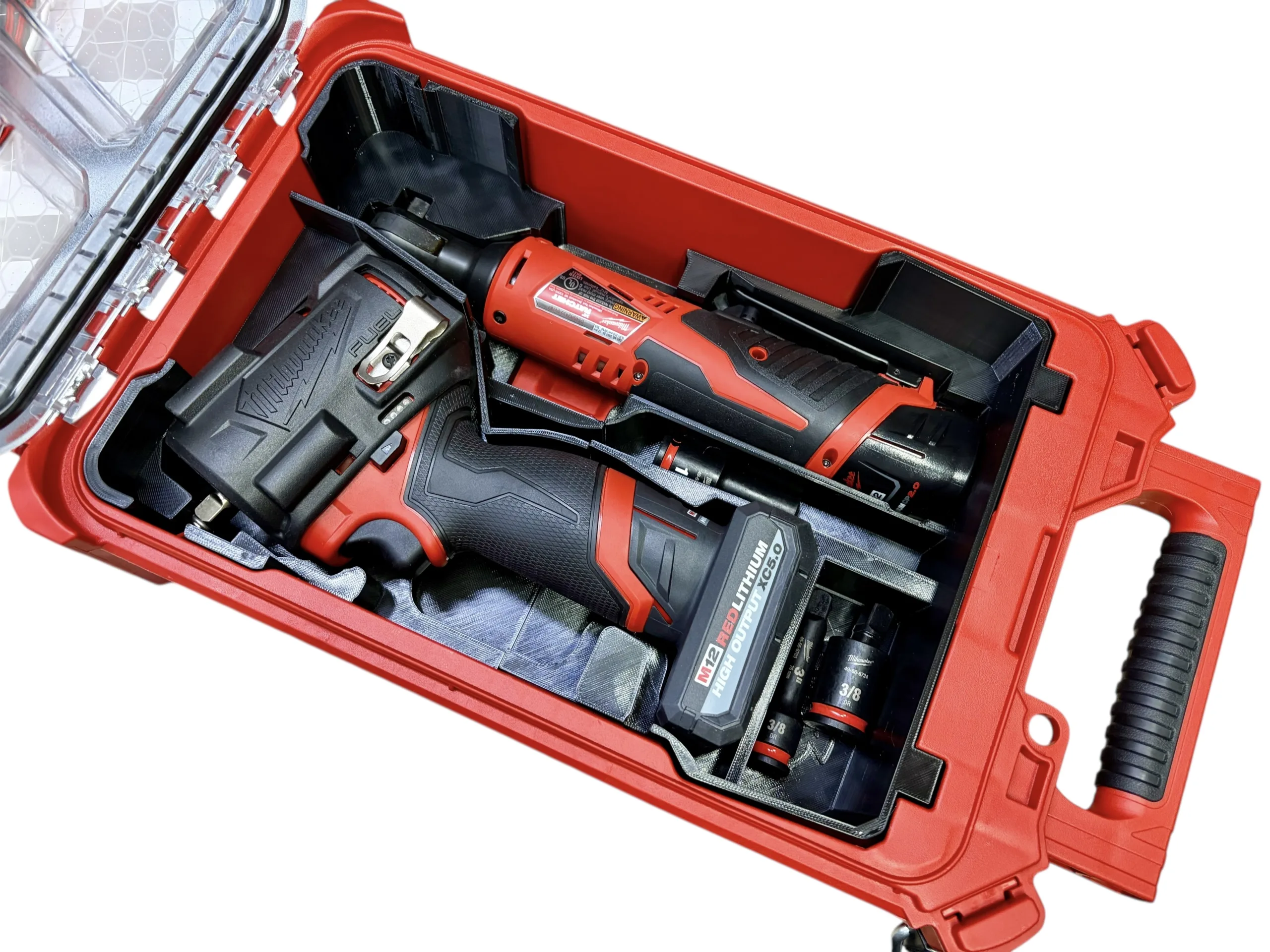 Milwaukee Packout M12 3/8 Inch Stubby Impact Wrench (GEN2,GEN3) & 3/8 Inch Ratchet Insert For Milwaukee Packout Container Model 48-22-8435